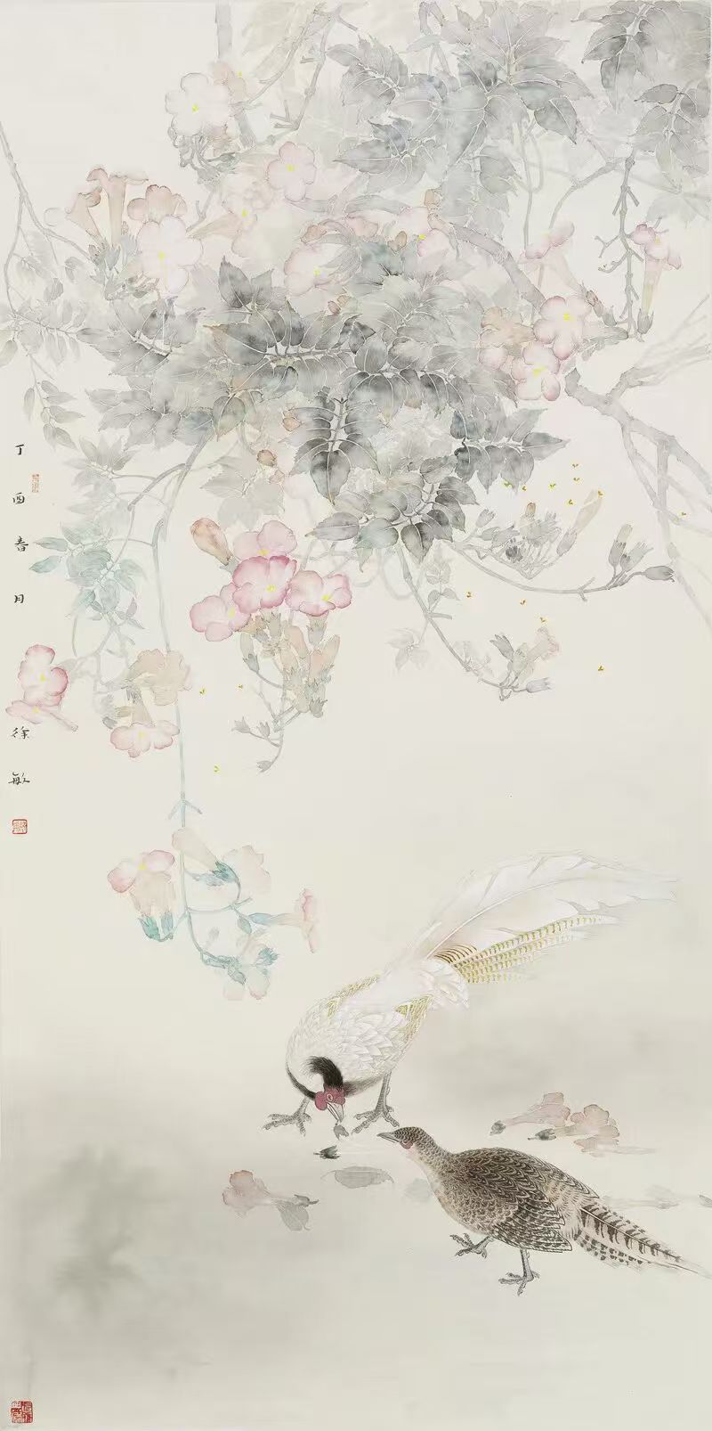 徐敏的艺术成就既源于专业深耕的技法积淀,更来自心境修为的精神滋养,笔下每一幅花鸟皆以淡彩藏深意、以静景传真情,既为当代工笔花鸟画注入清雅新风,也为传统花鸟题材的当代表达提供了可鉴范式。她的创作告诉我们,工笔花鸟不必以浓艳争辉,不必以繁复显技,以清淡守本心,以雅韵传真情,便能让笔墨穿越时光,抵达观者内心,这正是其作品能深深打动人心的关键所在。