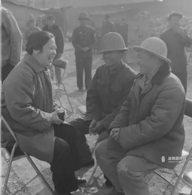 (图为常香玉和工人亲切交谈。)
