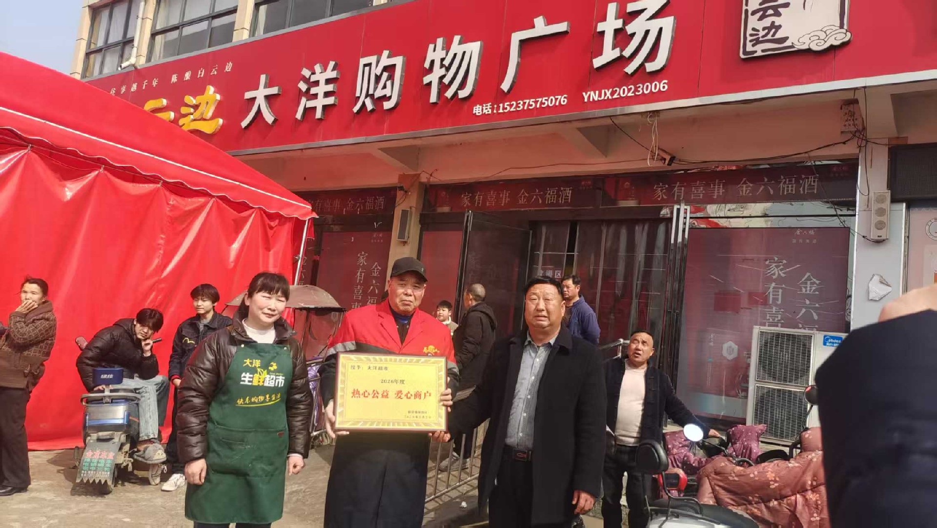 活动中,薛西村两委依次为薛西中心小学、大洋购物广场、鸿帅商贸、占领批发部、鸣轩家宴等爱心单位授予“热心公益爱心单位”牌匾,并为多位先进爱心人士颁发荣誉牌匾。一张张牌匾,既是荣誉,更是对大家热心公益、支持乡村建设的充分肯定。代表们面带笑容,上台郑重接牌,现场响起热烈掌声。