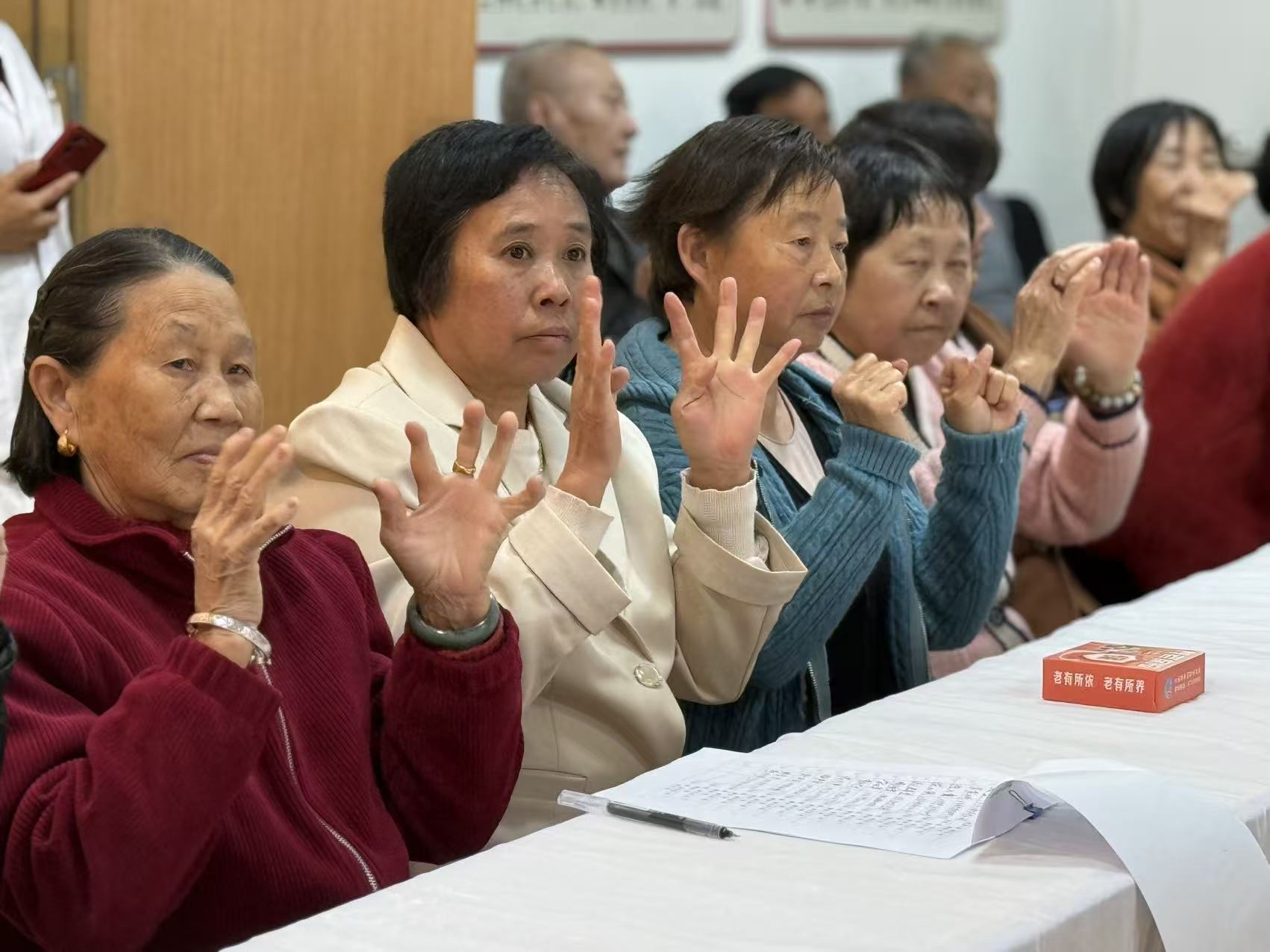 活动在温馨轻松的氛围中拉开帷幕,各环节衔接自然、内容丰富。主持人简短问候后,带领长者们开展坐姿养生热身操。伴随舒缓的音乐,大家完成了肩颈放松、手部舒展等简易动作,既缓解了疲劳,也为后续活动做好了身心铺垫。
