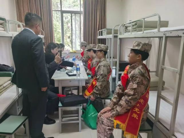 随后,慰问组为入伍新兵逐一发放慰问物资,将党和政府的关怀与家乡人民的温暖送到新兵手中;同时拥军企业中国农业银行嵩明县支行工作人员为部分入伍新兵现场办理义务兵家庭优待金发放卡,全面落实拥军优属各项政策,切实解除新兵后顾之忧,让新兵安心军营、建功军营。