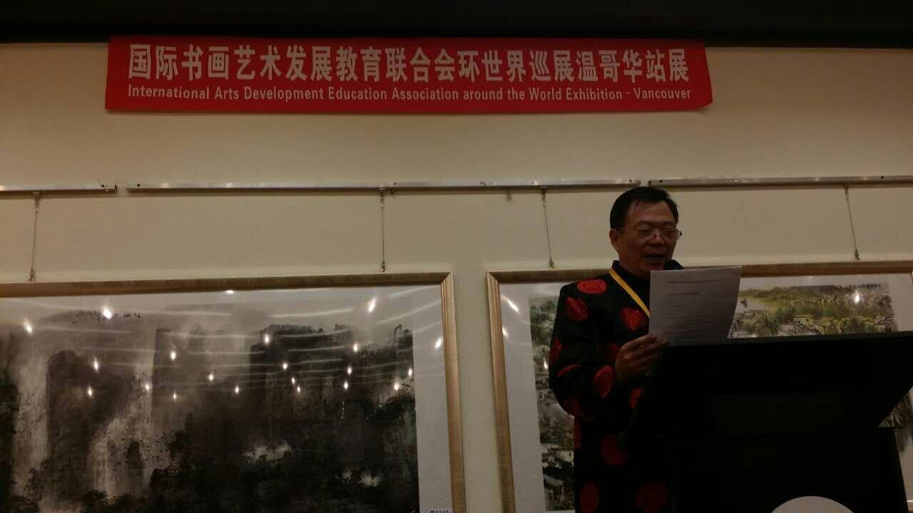 图20:韩湘人在环世界国际书画巡展加拿大温哥华站演讲