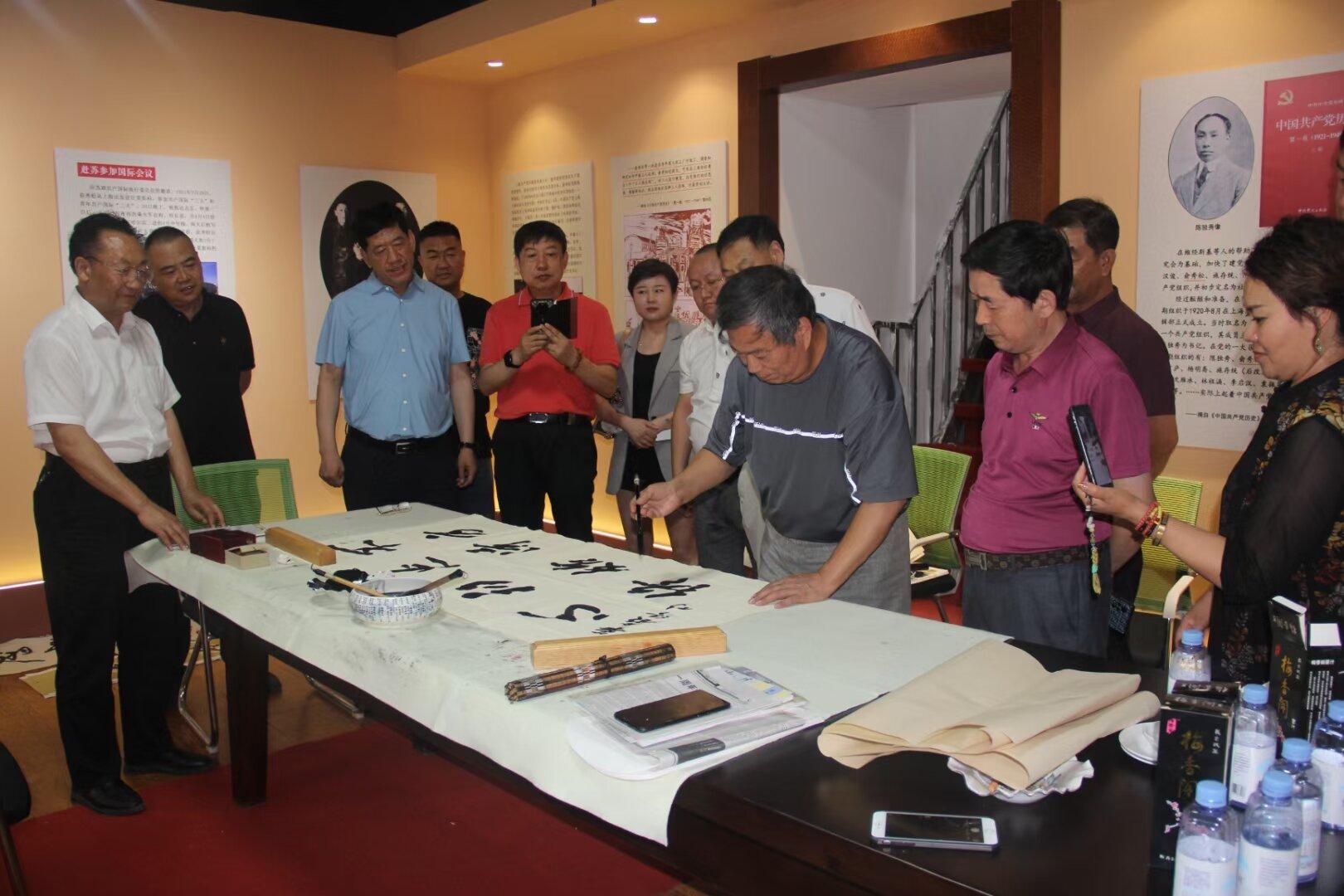 图23:韩湘人与乌鲁木齐书法艺术家们交流书法
