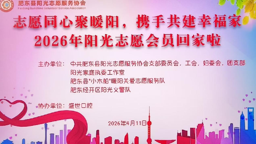 (安徽宿州讯:李志领 肖狮子)4月11日上午,安徽省合肥市肥东县盛世口腔会议室内暖意融融、笑语盈盈,肥东县阳光志愿服务协会第十三期“志愿同心聚暖阳 携手共建幸福家”志愿者回家暨4月份集体生日会在这里温情启幕。近二十名志愿者欢聚一堂,在轻松温馨的氛围中破冰交流、学习技能、共庆生辰,凝聚志愿力量,传递温暖情谊。