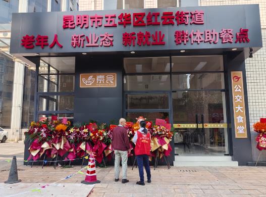 二期助餐点位于五华区红兴路9号(北市区公交车场Z1路车公交站台左侧),与一期助餐点(红兴路20号附2号)同步开放,全年供餐,早餐6:00—9:00、午餐10:30—13:00、晚餐16:30—19:00。两处助餐点交通便利、区位优越,方便周边老人、快递员、外卖骑手、网约车司机等群体就近就餐。二期助餐点以素食自助形式供餐,每餐提供不低于30个菜品。 红云街道及星河社区联动昆明公交集团,整合职工食堂资源,创新搭建“新老互助”服务平台,既解决了就餐难题,又凝聚了基层治理合力。