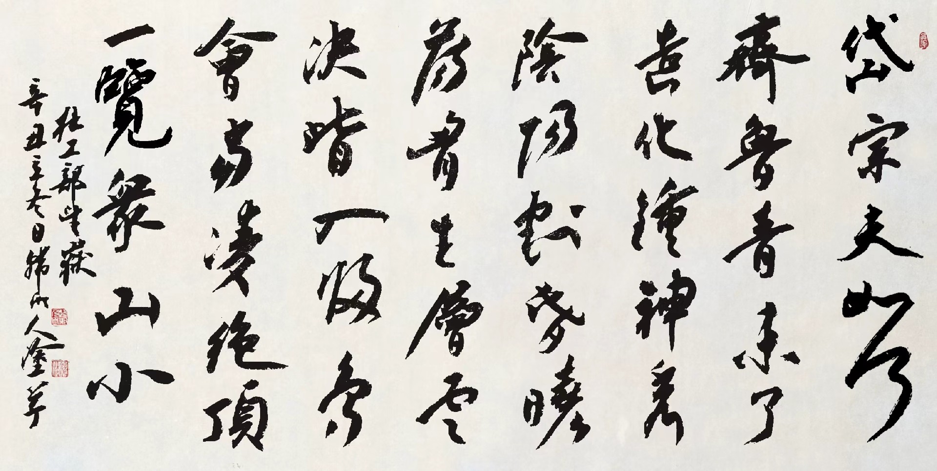 在创作题材上,韩湘人突破王宠书作多为诗文手稿、小幅尺牍的局限,拓展了王宠书艺的应用场景与表现空间。他创作大幅行草长卷、榜书匾额、楹联作品,将王宠疏淡空灵的书风,与宏大的创作形式相结合,小中见大,静中寓动。比如其榜书作品,将王宠小楷的精微笔法,转化为雄浑大气的大字笔墨,笔画如铸,气势磅礴,既保留王宠的古雅韵味,又兼具视觉冲击力;其行草长卷,在王宠疏朗布局的基础上,融入诗意的节奏起伏,笔墨与文辞相得益彰,让王宠书艺从文人案头的小品,走向更广阔的艺术舞台。