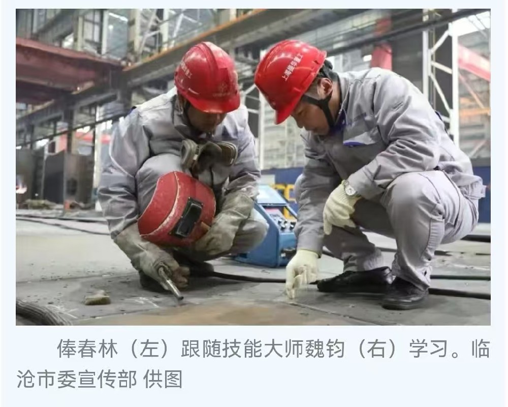 傣族小伙俸春林2019年从临沧技师学院毕业,来到上海振华重工长兴分公司,跟随公司技能大师魏钧学习电焊。短短1年,他就凭借过硬的技术,获得“嘉克杯”国际焊接大赛三等奖。今年,俸春林被公司作为特殊人才引进对象进行申报,并落户上海,实现了用技能改变命运。