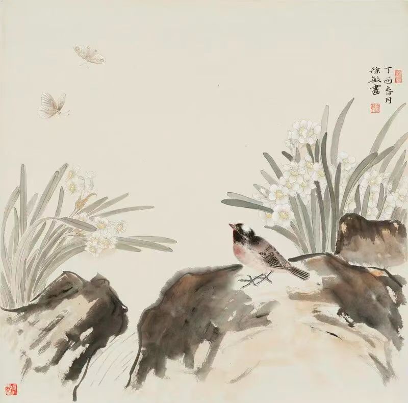 徐敏的艺术成就既源于专业深耕的技法积淀,更来自心境修为的精神滋养,笔下每一幅花鸟皆以淡彩藏深意、以静景传真情,既为当代工笔花鸟画注入清雅新风,也为传统花鸟题材的当代表达提供了可鉴范式。她的创作告诉我们,工笔花鸟不必以浓艳争辉,不必以繁复显技,以清淡守本心,以雅韵传真情,便能让笔墨穿越时光,抵达观者内心,这正是其作品能深深打动人心的关键所在。