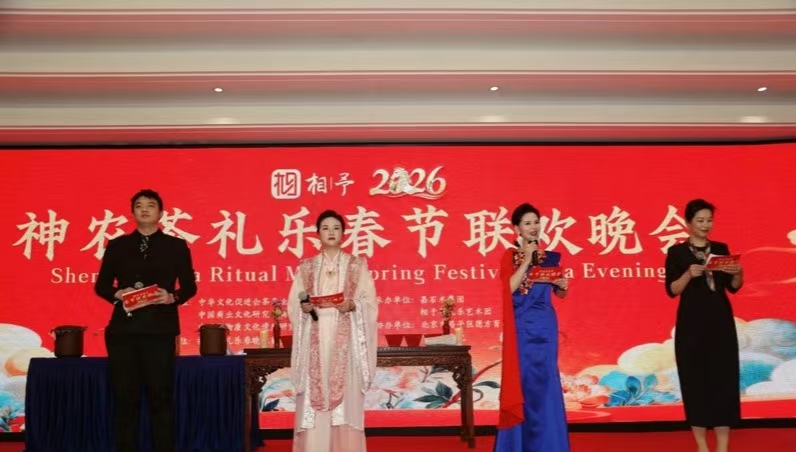 (凤凰新闻网络电视台记者邢占军讯)瑞雪初霁,银装映中轴;茶香氤氲,雅韵漫紫禁。2026年1月18日,“茶香九州·礼乐宾筵”——第二届神农茶礼乐春节联欢晚会,于中国传媒大学国际交流中心盛启华章。《礼颂神农·茶祖礼乐大典》庄严肃穆,一声鼓敲开千年茶魂;十八茶席美学争芳京华,五宗世界非遗交相辉映。近五百位中外嘉宾循香而至,共赴一场民间雅集:雅致盛会,于唐宋茶韵与古今交响中,见证中国式幸福炫彩世界。