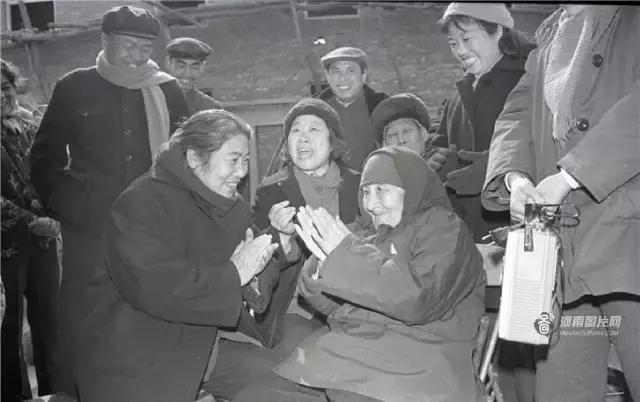 (图为常香玉在敬老院慰问五保老人。)