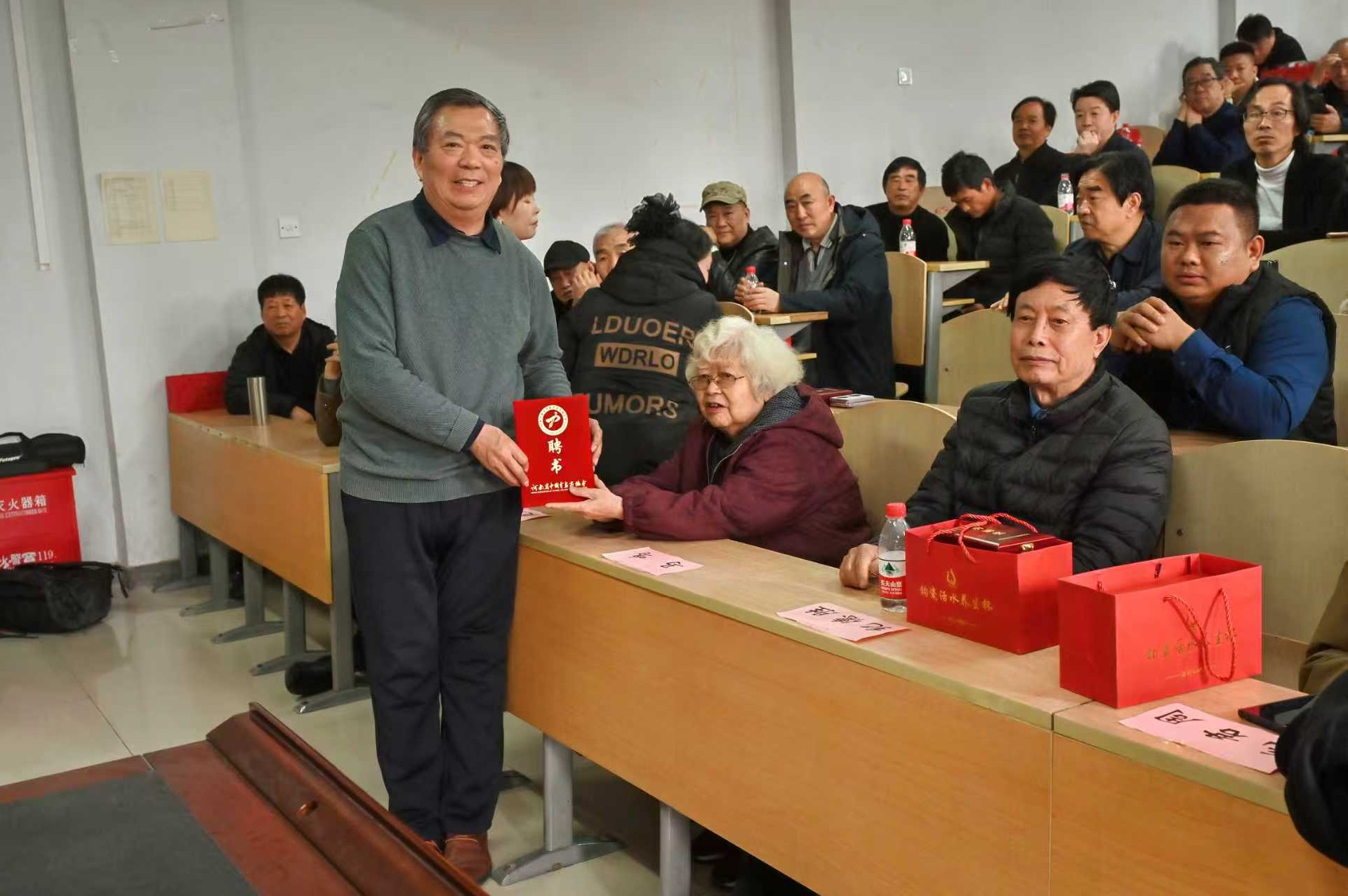 盛会之上,一段温暖而庄重的时刻令人动容。作为在书画理论领域笔耕半个多世纪的老会员,我有幸与毛君周、纪德胜、李山江等老艺术家一同登台,从协会创始人马鸣女士手中接过沉甸甸的 “卓越贡献奖章”。那一刻,荣光在胸,欣慰满怀,更觉使命在心。在代表协会历届老领导、老艺术家发言时,我深情回顾了协会走过的不平凡岁月:三十一年风雨兼程,三十一年薪火相传;新征程催人奋进,新使命重任在肩。我们坚信有新一届理事会的担当作为,有上广大会员的同心协力,河南省中国书画家协会的明天,必将更加璀璨辉煌!