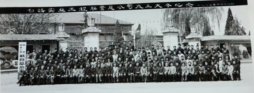 (图为白鸽实业工程联营总公司成立大会合影)