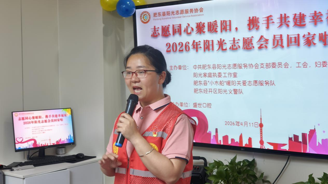 (安徽宿州讯:李志领 肖狮子)4月11日上午,安徽省合肥市肥东县盛世口腔会议室内暖意融融、笑语盈盈,肥东县阳光志愿服务协会第十三期“志愿同心聚暖阳 携手共建幸福家”志愿者回家暨4月份集体生日会在这里温情启幕。近二十名志愿者欢聚一堂,在轻松温馨的氛围中破冰交流、学习技能、共庆生辰,凝聚志愿力量,传递温暖情谊。